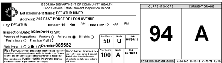Decatur Metro | May 11, 2011Following up on this story, after scoring a 50 on their health inspection in late April, Decatur Diner received a 94 on the retest.