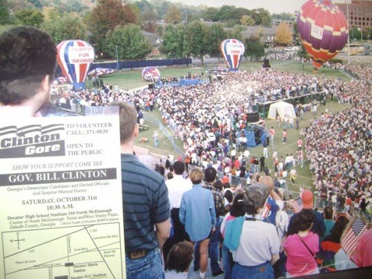 I had just returned to Decatur, had a house of Ponce de Leon Terrace, and was thrilled to walk to the Square on a beautiful fall day to see Bill introduced by Michael Stipp of REM. Remember he went on to beat the Republicans in a big win later that fall.