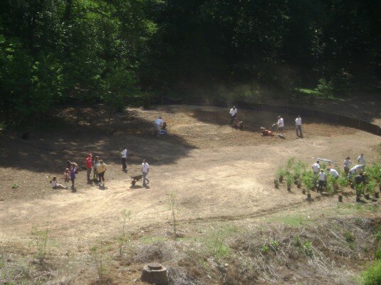Quite a lot of work is taking place in the Decatur Cemetery “meadow”. This is the area east of the cemetery that had been over-grown with kudzu for many years. There were scores of volunteers working two weeks ago and yesterday (4/27 several volunteers under the leadership of former DHS teacher Laura Cadenhead, now with REI) making progress. I am told that a famous international landscape architect from Georgia Tech is in charge of the operation.