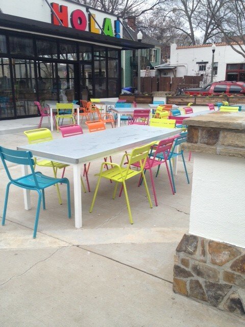 I am a fan of the brightly colored chairs and like that they mixed up. Looking forward to having a margarita on that patio.