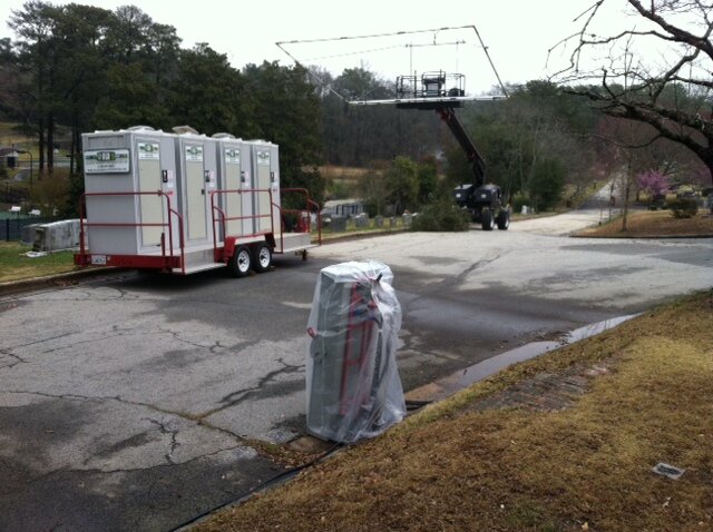 Decatur Metro | March 23, 2013 | 3:15 pmChris sends in this pic of movie preperation going on today in Decatur Cemetery and runs with dogs writes in FFAF “Anyone know what will be filming in the cemetery? Quite a bit of prep going on, my favorite being the guy who’s tying fake foliage to some of the trees.”
