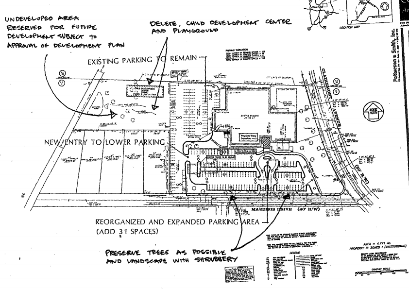 YMCA, Inc. wishes to modify the existing master site plan to build a roughly 3,500 square foot addition onto the building and expand the current parking lot to add 56 new parking spaces. The new building will have approximately 51,000 square feet of gross floor area. They propose to rezone two lots [on Maediris Drive] developed with single family houses that are adjacent to the site so that they may demolish the houses to build parking, an expanded detention facility and play area.