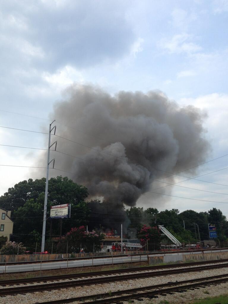 I was on DeKalb Ave. headed toward Decatur after work on Friday and was stopped at the fire station just past the McLendon intersection by the crew backing an engine into the driveway. Before they could get it into the garage they got a call and raced out again, heading east toward Decatur. Then while traffic was stopped at the red light at Arizona, another engine came roaring through that intersection, followed by a police car. As the light changed and traffic moved up the hill, we came upon the buildings, where the firefighters were just getting their gear on. The entire area was thick with smoke (couldn’t see flames yet) and since no one was directing traffic yet, we inched past the fire through the smoke.