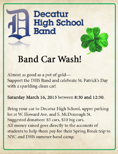 Decatur Metro | March 16, 2012Here are a couple of items from the DHS Band which may be of interest. More details at http://www.decaturband.org/
