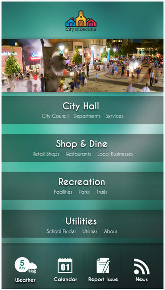 Decatur, Ga. – Today the City of Decatur announced the launch of its first mobile app, available for iPhones and smartphones using the Android operating system. The City worked with MyCommunity Mobile to create the app, which is intended for residents and visitors. It can be downloaded for free by searching for “City of Decatur official” on the App Store or Google Play.